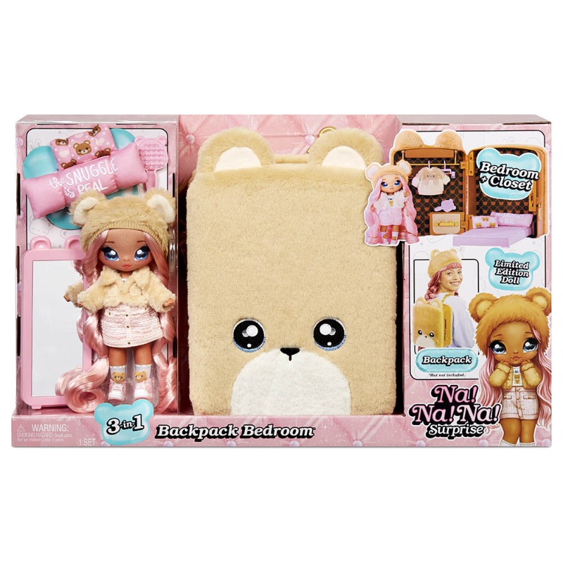 3 في 1 حقيبة ظهر لغرفة نوم شخصية سارة ثنجليس من نا نا نا سربرايز. - تتضمن مجموعة اللعب غرفة نوم مع مرآة حقيقية بتصميم دبدوب، وسرير قابل للطي، وخزانة مع أدراج للعمل، ووسائد، وبطانية…
