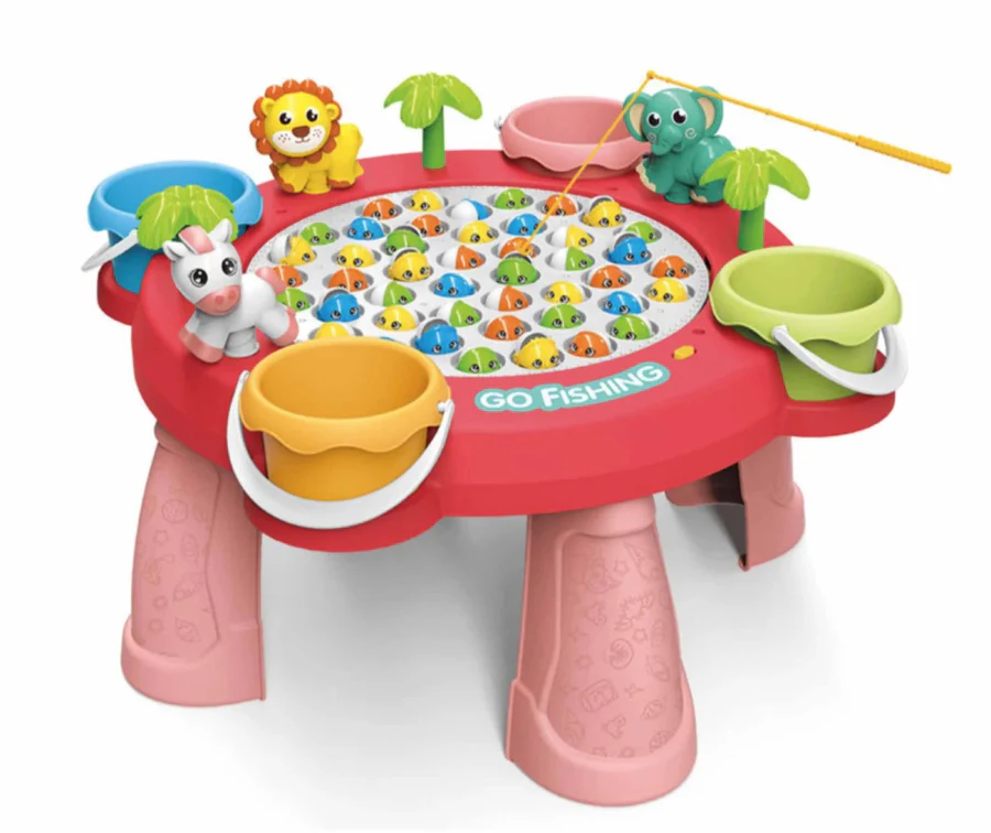 Go Fishing Game Zoo Table: Fun and Interactive Adventure for 4 Players! Dive into a thrilling underwater adventure with the Go Fishing Zoo Game Table, designed to engage and entertain up to 4 players: ENGAGING ZOO-THEMED EXPERIENCE Immerse yourself in a zoo-themed fishing adventure, featuring vibrant colors and charming zoo animal designs that captivate young imaginations. INTERACTIVE GAMEPLAY Enjoy interactive gameplay that encourages strategic thinking and coordination, as players compete to catch fish with magnetic rods in this entertaining and educational game. MULTIPLAYER FUN Ideal for group play, this game table accommodates up to 4 players, promoting social interaction and friendly competition among kids.
