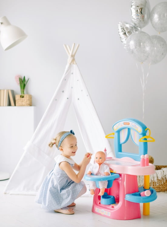 This is a fun set that includes baby doll care supplies. The bobble head is included in the package. On the counter there is a table for feeding, a container for bathing a baby doll. You will also find a chamber pot, pacifier, feeding bottle, powder bottle, shampoo jar, hangers, saucer, cup, spoon, knife, fork. Watch your little princess’s face light up with this awesome The Nanny Set. This grand addition to any playroom includes a 10-piece furniture accessory pack for hours of frosty fun. There are 16 accessories