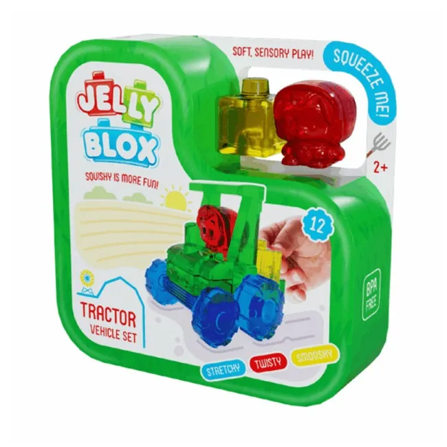 Stretchy, Twisty, Smooshy. Introduce your little ones to farmyard creativity with the Jelly Blox Tractor Set — a sensory building toy perfect for toddlers and preschoolers. This 12-piece set features soft, squishy and stretchable blocks that kids can stack, squeeze, stretch, and squish for imaginative hands-on play unlike traditional rigid bricks. Build a colorful rolling tractor and bring it to life with the included farmer figure and apple-filled crate blox that add fun tactile textures. Designed to support key developmental milestones such as fine motor skills, hand-eye coordination, and creative thinking, Jelly Blox toys encourage open-ended play. Made with safety in mind, the blocks are ouch-free, easy to clean with mild soap and water, and fully compatible with other Jelly Blox sets for extended adventures. Recommended for ages 2 and up, this Tractor Set makes a delightful gift for young builders and sensory play enthusiasts.