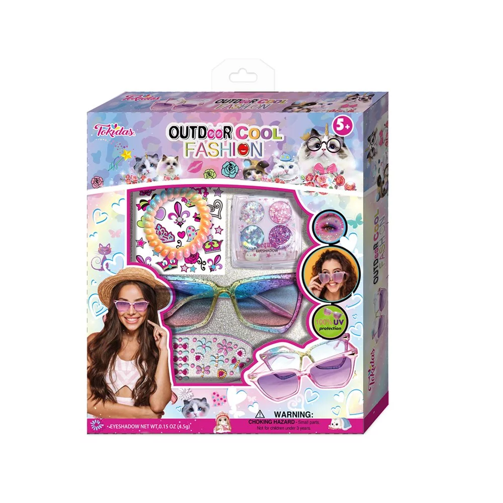 4 Color Eyeshadow in Palette,1 Sun Glasses,1 Glitter Tattoo Stickers, 1 Bracelet / Hair Holder, 1 Sheet of Diamonds