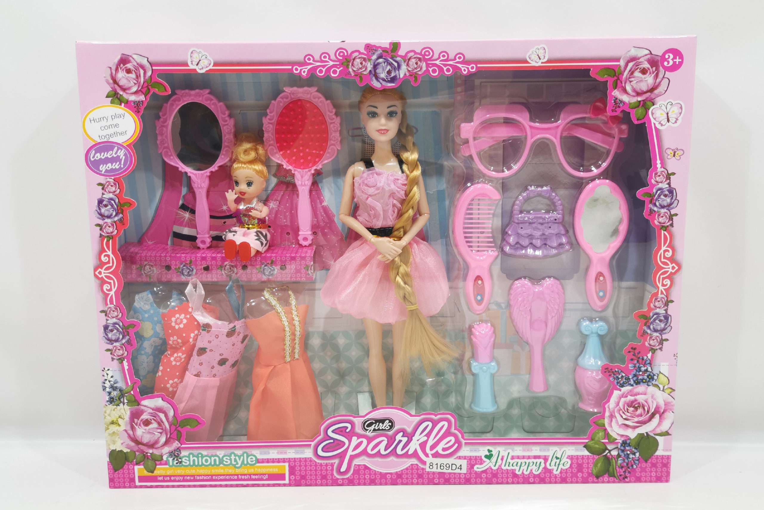GIRLS SPARKEL PRETTY GIRL DOLL SET, PRINCESS COLORFUL CLOTHING, HOUSE AND ETC..