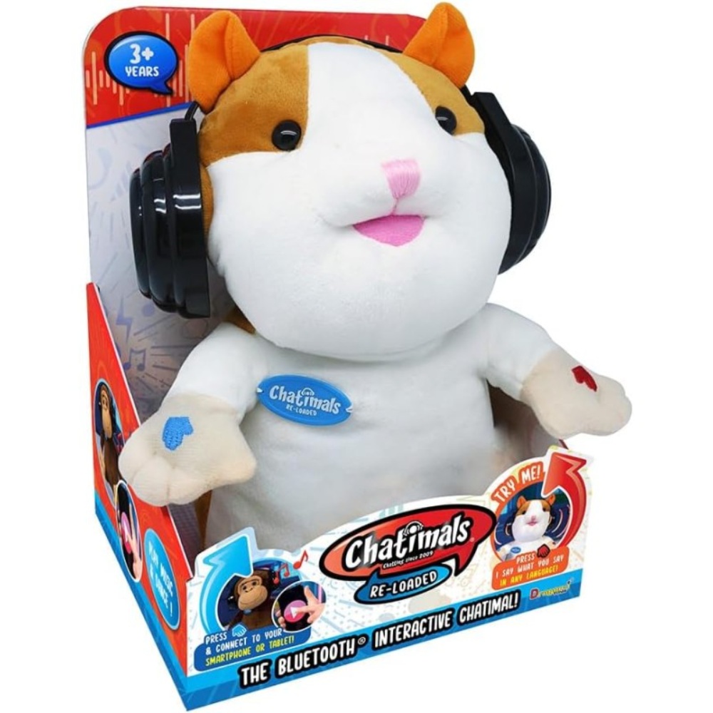 Product Name: Chatimals – Hamster Bluetooth & Talk Back Product Overview: The Chatimals Re-Loaded Hamster is an interactive toy that combines entertainment and education, allowing children to engage in lifelike conversations and enjoy music through Bluetooth connectivity. This fun and lively hamster makes playtime exciting and enriching! Specifications: Functionality: Talk Back and Bluetooth Wireless Power Source: Operates on 3 x AA / LR6 batteries (not included; includes try-me batteries) Dimensions: Compact size suitable for small hands Description: The Chatimals Re-Loaded Hamster features a unique Talk Back Function that allows children to engage in conversations. By pressing its left paw, kids can speak in their preferred language, and the hamster will repeat what they say, enhancing verbal skills and communication. Additionally, the Bluetooth Wireless Function brings music and dance to life! By pressing the right paw, children can connect the hamster to their smart devices, enabling it to dance and move its paws and head to their favorite tunes. This creates a lively dance party atmosphere that kids will love! Educational Benefits: Communication Skills: Encourages children to practice speaking and listening through interactive play. Engaging Learning Tool: Combines fun with educational value, making it perfect for both entertainment and skill development. Additional Information: Interactive Play: Ideal for solo or group play, fostering social interaction among children. Durable Design: Built to withstand enthusiastic play while remaining safe for kids. Encourages Creativity: Sparks imagination as children interact with the hamster and create their own games and scenarios. Transform playtime into a vibrant learning experience with the Chatimals Re-Loaded Hamster Bluetooth & Talk Back, where fun meets education!