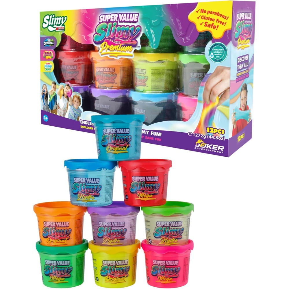 Unleash Fun and Creativity with Slimy Super Value Premium Looking for the perfect gift or creative outlet that guarantees fun and excitement? Say hello to the Slimy Super Value Premium 12-Pack! Designed for boys and girls of all ages, this slime gift set offers hours of sensory entertainment, making it ideal for playdates, parties, or simply relaxing at home. Each pack contains 12 vibrant and colorful individual slime portions, weighing 4oz (112 grams) each—a treasure trove of slimy, gooey fun that sparks creativity and imagination. Safe, Non-Toxic, and Perfect for All Ages Safety is our top priority, which is why the Slimy Super Value Premium 12-Pack is crafted using non-toxic and environmentally friendly materials. Parents can rest easy knowing their children have a safe and enjoyable toy that contributes to their developmental growth. Whether you’re stretching, squishing, or sculpting the slime into fun shapes, this toy offers a mess-free experience that captivates kids without any worries. An Ideal Gift Set for All Occasions From birthdays and holiday celebrations to just-because surprises, the Slimy Super Value Premium 12-Pack makes for an unforgettable and versatile gift. Its compact portions offer an assortment of colors and textures that keep kids engaged and entertained. Whether you’re hosting a slime-making craft session or simply looking for a hands-on activity to unwind, this slime toy set is guaranteed to bring joy and laughter to everyone involved. Don’t miss out on gifting the ultimate sensory experience—let the Slimy Super Value Premium 12-Pack become part of your family’s or friends’ creative journey today!