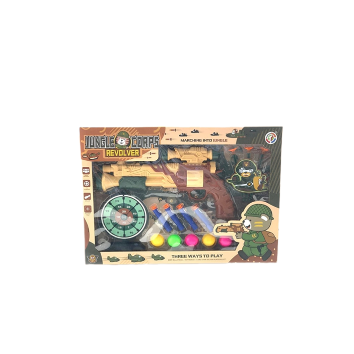 طقم مسدس Jungle Corps Revolver 🔥🔫 جاهز لمغامرات الأكشن؟ طقم Jungle Corps Revolver — CH-043 يمنح طفلك تجربة لعب ممتعة مع إطلاق آمن ومؤثرات حماسية! المميزات: _ مسدس كبير بتصميم الغابة المقاتلة _ سهام آمنة + كرات لعب متعددة _ لوحة تصويب لتحديات رائعة _ مناسب لعمر 6 سنوات وما فوق
