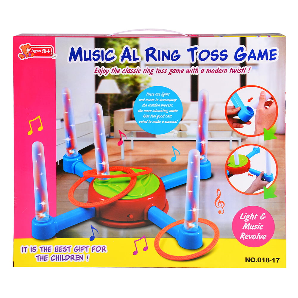 Electric Ring Toss Game Classic ring toss game of high quality material, safe for kids to play with. Great toys to encourage kids’ gross and fine motor skill development, and hand-eye coordination ability. With lights and music to accompany the rotating process. Adds more fun to kids’ playing time.