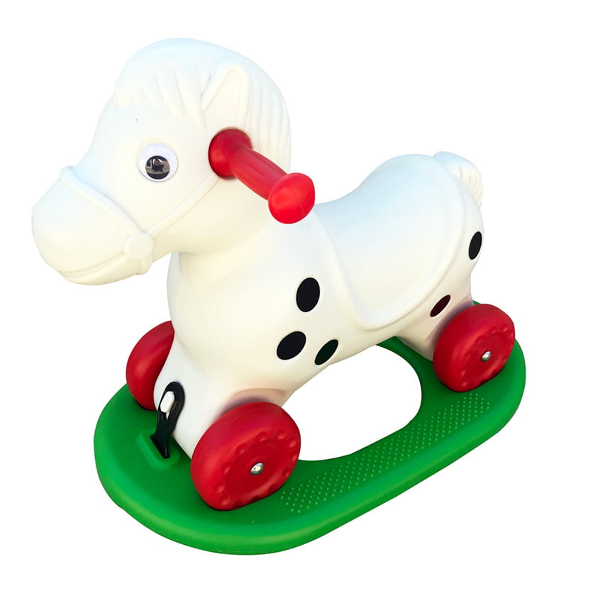 يمكن لهذه اللعبة متعددة الاستخدامات أن تتأرجح ذهابًا وإيابًا ، أو يمكن للحصان أن ينطلق بسهولة من قاعدة ليتدحرج على عجلات سفلية. يمكن أن تساعد لعبة الركوب طفلك على تطوير القوة والتوازن الأساسي.