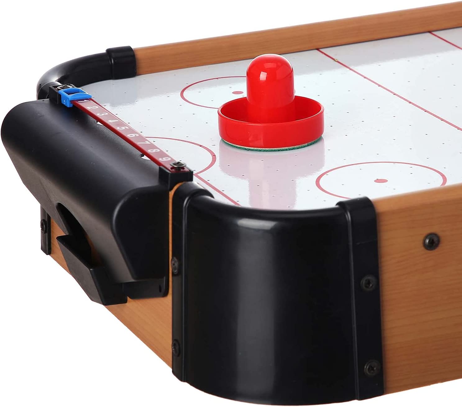 The Air Hockey Game is a board game for active children and cheerful adults that can not only cheer up all participants, but also maintain a good physical tone and develop a reaction. Once it was available only in special entertainment centers, but now everyone can buy this wonderful “good mood generator”. Borders along the edges of the playing field will not allow the puck to fly out of the field. The table is designed in such a way that special holes are located along the perimeter of the playing space, which are responsible for the air supply and the movement of the pucks. Air circulating device powered by 6 “AA” batteries (not included). All hammered washers fall out into a special hole under the gate. The rules of air hockey are very simple: shoot the puck into the opponent’s goal. And, of course, to defend their gates. The game is played with special plastic bats in the form of a hat, with which both players hit the puck. Each player can create his own unique tactics that will lead him to victory. You can compete with your opponent in speed by trying to score a goal with a sudden attack right on the goal. Or try to confuse him by making the puck bounce off the boards several times before reaching the goal. The game lasts until nine goals are scored in one of the gates. The game contributes to the development of reaction and observation, the ability to instantly make decisions. Air hockey is able to captivate you and your child so much that you will want to spend more and more time with your family in exciting battles.