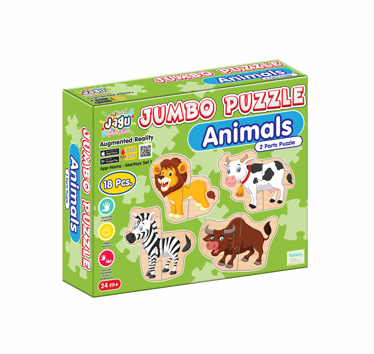 Thanks to the QR code on the box, you can download the application to your phone free of charge and make the shapes speak. Jumbo Puzzle Animal