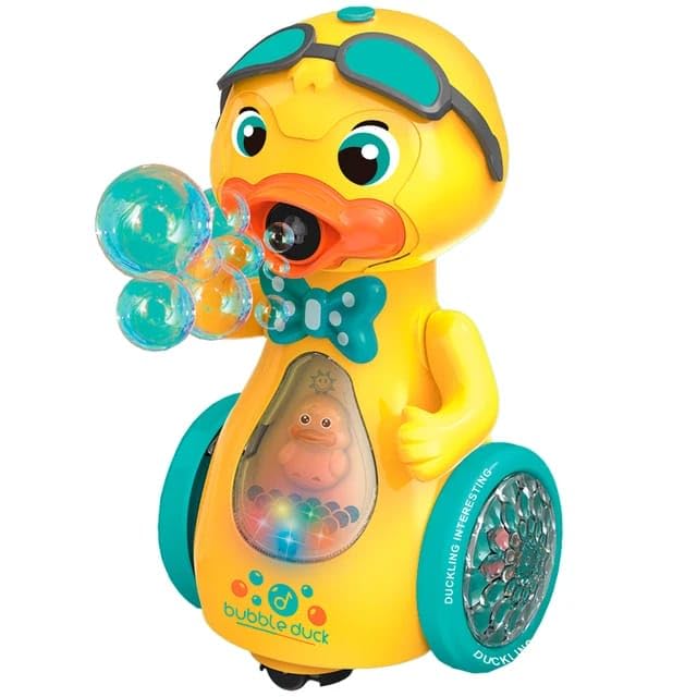 Bubble Duck Series Walk & Stand with Music and Lights Roberty bubble machine is not only a bubble machine but also a Duck toy. It will blow out hundreds of bubbles when you fill it up with bubble water. For many children, it’s a robot Duck that breathes bubble fire! Without bubble water, it’s also a cute Duck toy that can walk, stay still, sing. Bubbles for fun Bubble machine with lights and sound effects. 2 modes of play: moving, standing High quality Fun for all ages. Bump & Go Automatic blow bubble, just adds bubble water and you can create thousands of bubbles at the push of a button. 1 Bottle full of bubbles included Color may vary Age recommend: 3+