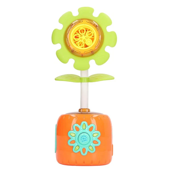 Bubble Sun Flower Toy Ideal Gift: This bubble machine is the perfect gift for giving to a child. Easy to use and multifunctional: The bubble machine is easy to use, with one click start, three gear adjustment, dazzling lighting, and swinging and dancing.