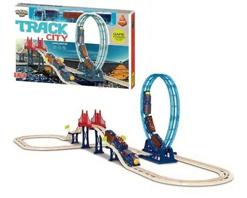 City Track of Railways” is an incredible game set that will definitely amaze you with its unusual concept! Imagine a train flying along the railway tracks at the speed of an arrow and then suddenly performing an exciting trick called a “dead loop” and you will literally stop breathing! This set “Railway City” Al3aby offers young adventurers and bright emotions to become part of an exciting railway journey, which will certainly leave behind only the most pleasant impressions. Features: The game set contains 54 elements. The set includes a locomotive and 2 cars. The locomotive runs on 4 AAA batteries (not included). The railway tracks are supplemented with a realistic bridge model. A feature of the toy is the ability of the train to perform the “dead loop” trick. All elements are made of durable plastic that perfectly withstands active children’s games.