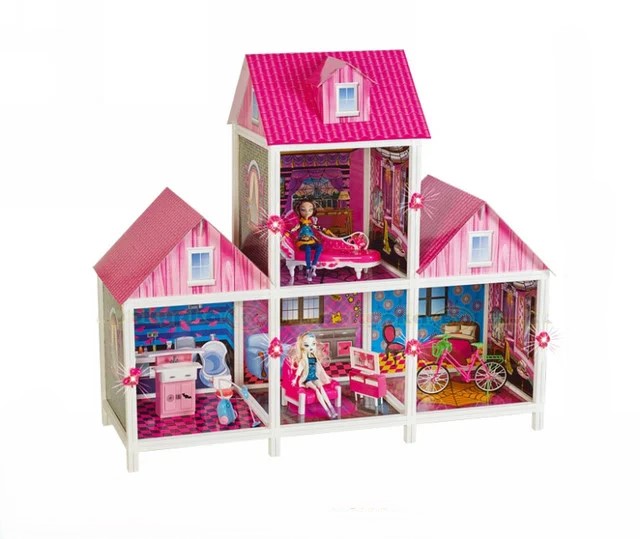 The Girl Princess Doll Luxury Villa! Perfect gift for any little princess! Well made and sturdy. Doll house 4 rooms. Plastic frame, cardboard walls, floor, roof. The set includes: 2 dolls from the cartoon Monster High , a bicycle, household utensils and additional accessories as in the photo. In such a house, the doll fits in full growth. The house is assembled from a plastic frame with cardboard overlaps. This design is easy to assemble, lightweight, mobile. Great Gift – This doll house will not only provide years of entertainment, but it will also help develop social skills, spark imaginative play, and hone fine motor skills. It is an ideal choice that would make a great gift for any occasion! Your kids will love to play with their friends and become more active. Assembled size (length/width/height): 113. 5x42x99 cm. Package size: 71x14x64 cm.