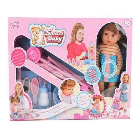 دمية بيبي مع عربة هذه فتاة صغيرة جميلة هيا نلعب