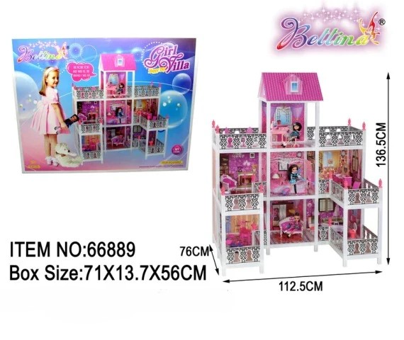 The Little Girl Villa Doll House Luxury Villa! Perfect gift for any little princess! Well made and sturdy. The furniture fits most 12” fashion dolls; They can reach the five rooms and three levels of play space. This grand addition to any playroom pack for hours of frosty fun. Watch your little princess’s face light up with this awesome doll house. Give Your Princess The Castle She Deserves! 3 Levels *Note: Items May Vary From Image Displayed.