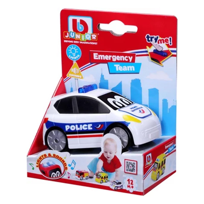 تتوفر 3 مركبات طوارئ مختلفة في التشكيلة؛ سيارة إطفاء وسيارة شرطة وسيارة إسعاف. مركبة تدخل حرة الحركة مع صوت وإضاءة. سهلة الإمساك بها للأطفال الصغار، ما عليك سوى الضغط على الضوء الوامض لتنشيط الأصوات والأضواء! متطلبات العمر: من 12 شهرًا البطاريات: بطاريتان LR03 مرفقتان