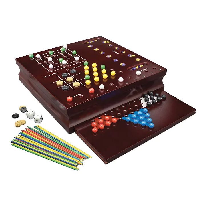 - تحتوي هذه المجموعة المكونة من 10 ألعاب كلاسيكية لساعات من المرح. - وشملت الألعاب: الشطرنج ، Mancala ، لعبة الداما ، لعبة الداما الصينية ، Mind Magic ، لعبة الطاولة ، Pick Up Sticks ، Tic Tac Toe ، Mill ، و Roll-Em. - توجد جميع الألعاب في خزانة خشبية جميلة تجعل مجموعة الألعاب هذه قطعة عرض أيضًا. - تحتوي مجموعة هواة الألعاب الكلاسيكية في الخزانة الخشبية على عشر ألعاب لوحية كلاسيكية لساعات من المرح - جميع الألعاب بها لوح خشبي صلب - للاعب واحد أو أكثر من سن 6 وما فوق