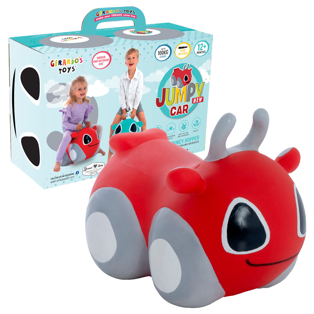 سيارة القفز القابلة للنفخ لون أحمر المميزة من جيراردوس تويز. - سيارة القفز القابلة للنفخ هي واحدة من الألعاب الداخلية أو الخارجية للأطفال. - تتضمن لعبة الركوب والمضخة. - تطور التحكم في التوازن ، ويقوي العضلات ، ويبني الثقة ، ويزيد من مهارات التناسق للأطفال. - سهلة الاستخدام والحفاظ عليها. - تتميز سيارة الركوب بآذان قوية يمكن للأطفال الإمساك بها بأمان أثناء القفز. - مصنوعة من مادة PVC وغير قابلة للانزلاق. - أبعاد التقريبية: 61 × 29 × 66 سم. - مناسبة للأعمار من 1+ فما فوق.