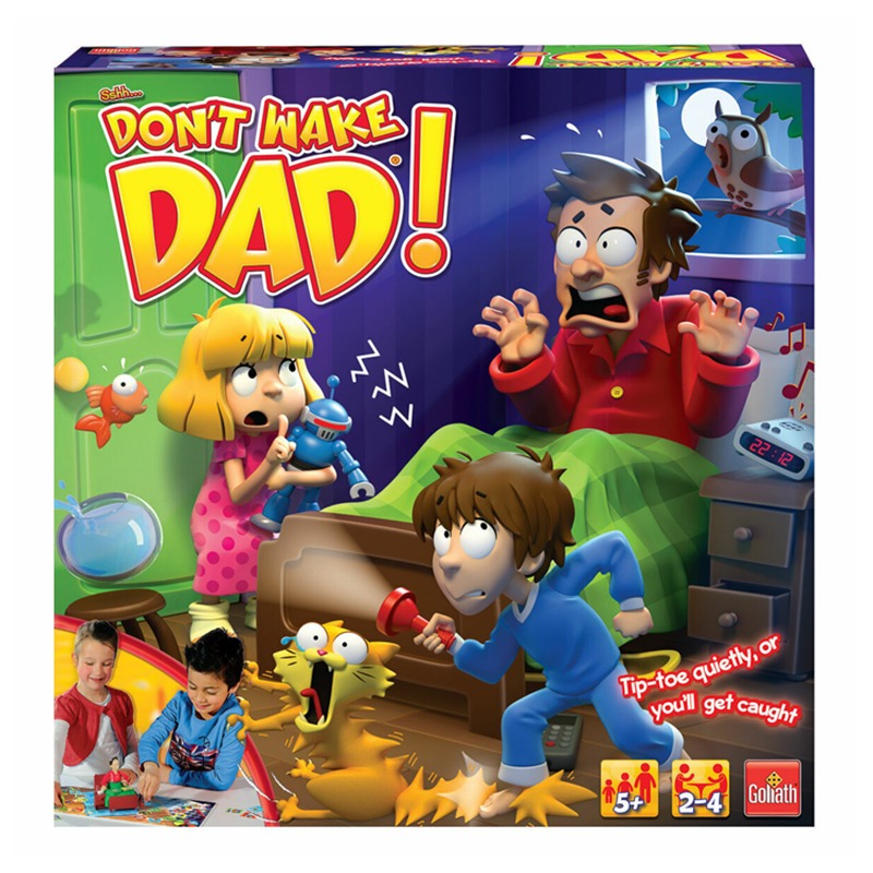 - هل تستطيع الوصول إلى الثلاجة وتربح كعكة الشوكولاتة بدون ان تيقظ أبي؟ -استخدام بطاقات الإعفاء لتجنب الضغط على منبه أبي بذلك حتى لا تزعجه. - المؤثرات الصوتية الإلكترونية - صوت أبي ، قعقعة المقالي ، و صرخة القطة وأنت تخطو على ذيله وعدة أشياء أخرى - يتطلب بطاريتين AA (غير مدرجتين) - لعدد 2-4 لاعبين ، للأعمار من 5 سنوات فما فوق