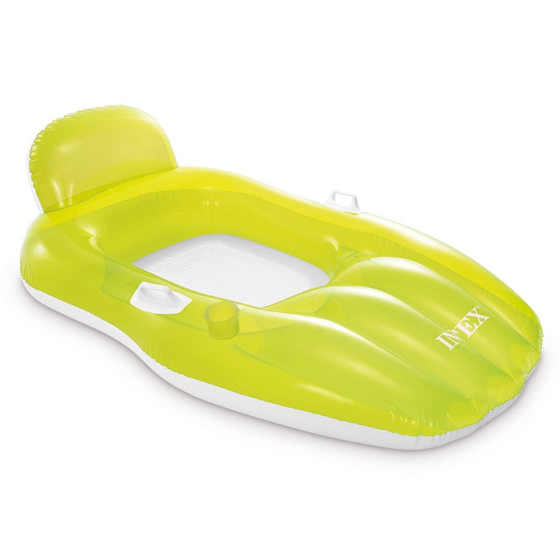 Float Chill Float Lounge From Intex. - Inflatable chair with comfortable headrest. - Includes cup holder and two sturdy handles. - Consists of two separate air chambers. - Made of durable 0. 30mm vinyl. - Approximate dimensions: 64/41 inches. - Maximum load: 100 kg.