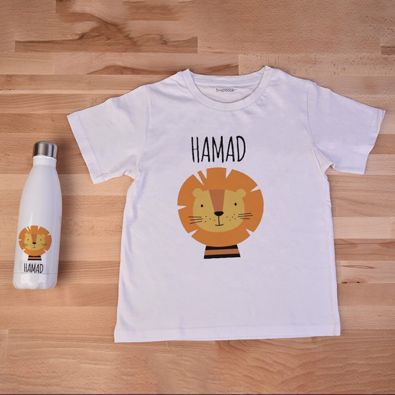 ما هي المجموعة التالية التي يجب أن يمتلكها طفلك؟ بالتأكيد تي شيرت مطابق مع زجاجة فولاذية. باستخدام سناب بوك، يمكنك تخصيص مجموعة طفلك بأسمائهم. يسلط الضوء: - تي شيرت مصنوع من ملمس القطن والبوليستر - زجاجة فولاذية سعة ١ ٧ أونصة (٥ ٠ ٠ مل) مناسبة للسائل البارد والساخن