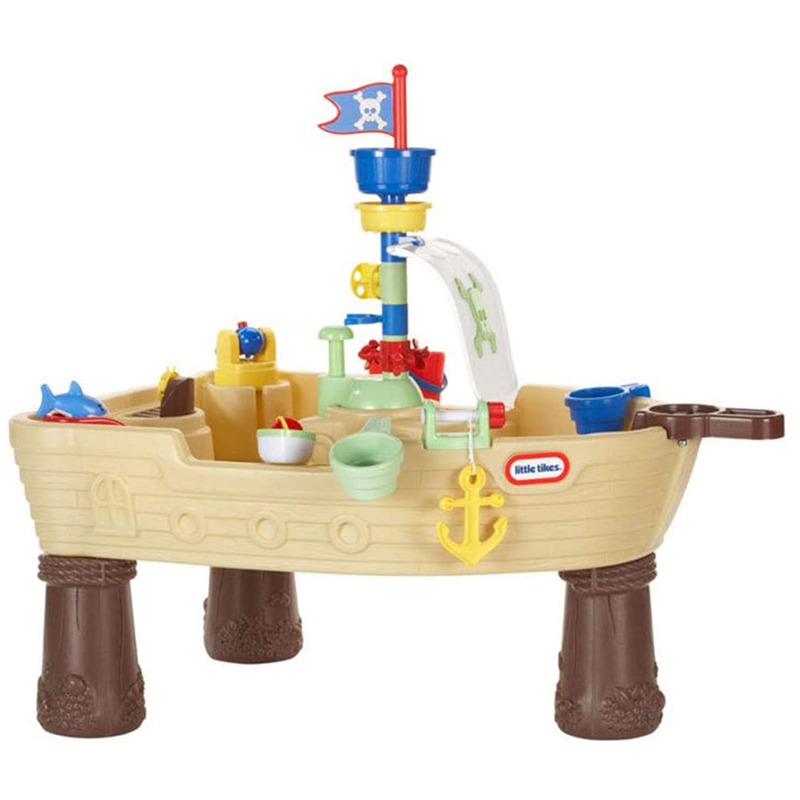 - طاولة لعب مائية في الهواء الطلق على شكل سفينة القراصنة مليئة بميزات الغزل - حافظ على حركة الماء بالمضخة أو بسكب الماء في عش الغراب وراقب كل شيء يدور - يتسبب الطاحونات في حدوث تيار في السفينة يحرك الأجسام الطافية حولها - يمكن للأطفال التصويب ورش الماء من خراطيم المياه - عجلة القيادة تدور