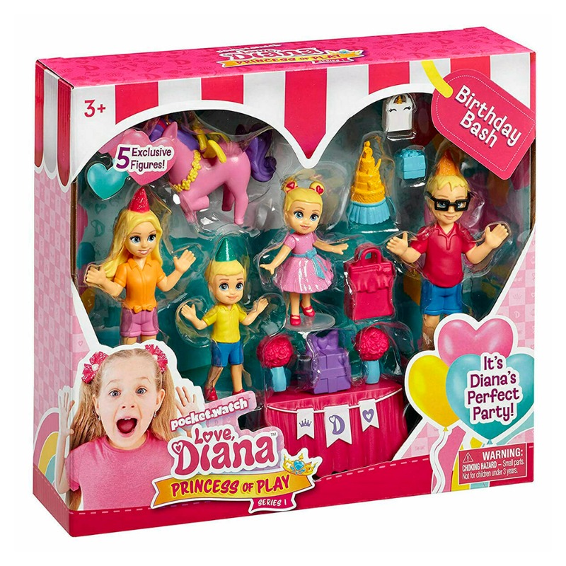 - إنها حفلة أميرة اللعب تحت عنوان عيد ميلاد مع ديانا وروما وأمي وأبي و الحصان الأليف - تتضمن خمسة تماثيل بمقياس 2. 5 بوصة (6. 35 سم) معطرة حصرية - يأتي مع 8 ملحقات بما في ذلك كعكة عيد ميلاد ومزهريات وطاولة وهدايا