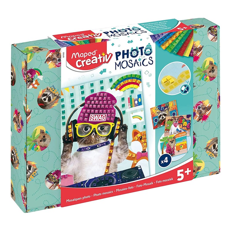 - مجموعة إبداعية للأطفال من مابيد كريتيف لتركيب صور الفسيفساء. - نشاط متنوع وممتع يطور براعة الأطفال ومهاراتهم الحركية الدقيقة. - المحتويات: 4 صور مختلفة، 8 صفائح من ملصقات الفسيفساء. - الفئة العمرية المناسبة: 5 سنوات فما فوق.