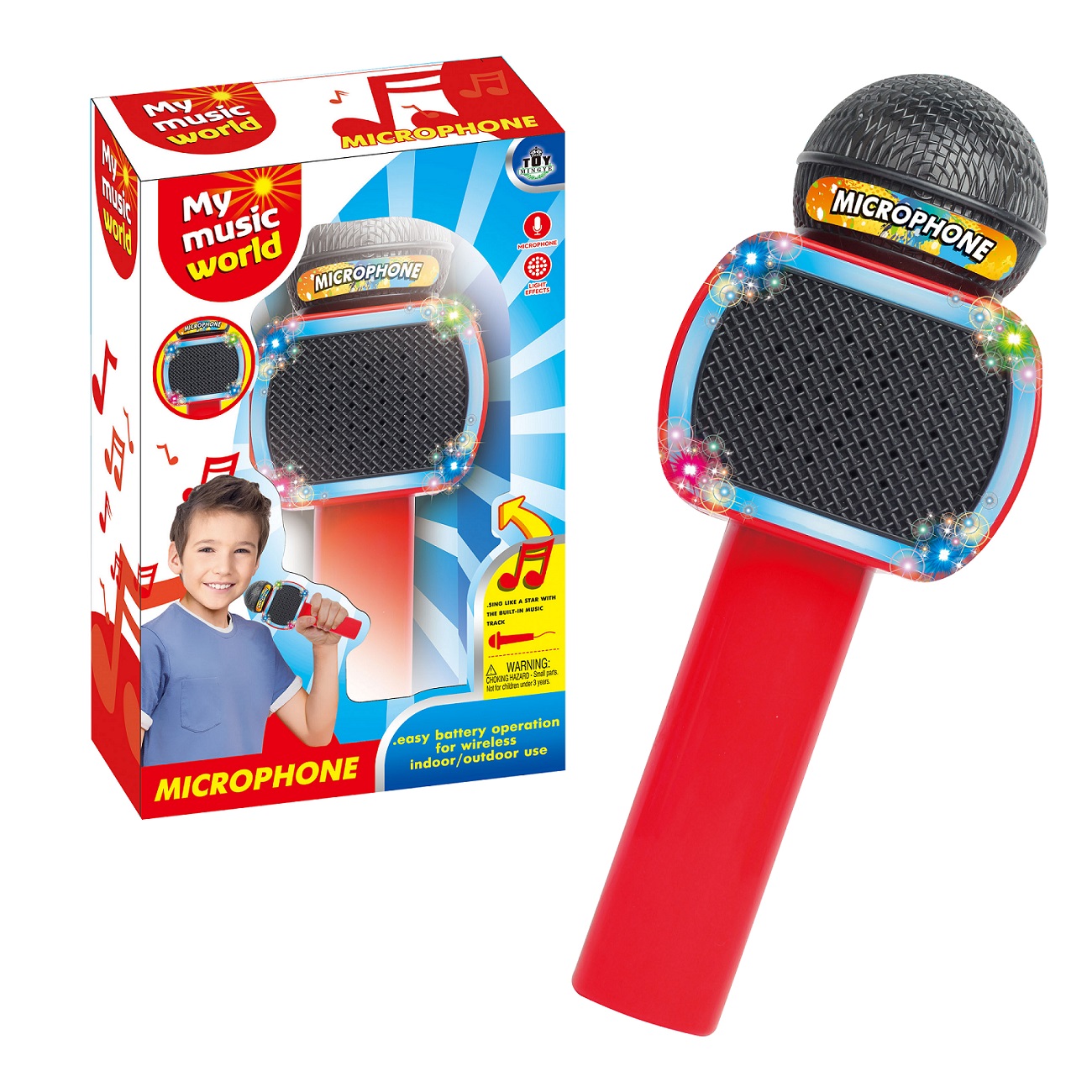 ميكروفون لاسلكي كاريوكي مع موسيقى. - تشمل: المؤثرات الضوئية ، وصوت التصفيق ، وتشغيل الموسيقى والإيقاعات التجريبية. - يمكنك توصيل جهاز صوت خارجي واستخدام وظيفة الكاريوكي. - مصنوعة من مواد عالية الجودة وآمنة لطفلك. - الأبعاد (العرض × الارتفاع): 18 × 27 × 7 سم. - البطارية: 3x 1. 5V AA (غير مدرجة). - الفئة العمرية المناسبة: 3 سنوات فما فوق.