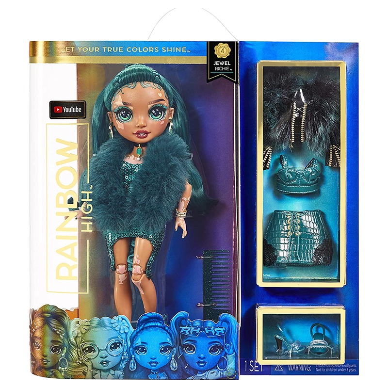 تتميز جويل ريتشي بتصميم فريد و ترتدي ملابس الزمرد باللون الأخضر من الرأس إلى أخمص القدم. - دمية أنيقة، 2 ملابس دمى كاملة، زوجان من أحذية الدمى، ومشط الدمى، و2 شماعات وحامل الدمية. - تتميز بميزات مفصلة رائعة في أزيائها وشعر جميل مفرود مع حلقات شعر، رموش طويلة وعيون زجاجية. - اغسلي الشعر لإزالة جل التصفيف: عند أول مرة فكها للدمة، يمكنك غسل شعرها بالكامل لإزالة جل التصفيف والسماح للشعر يجف تمامًا. بعد ذلك، يكون شعرها جاهزًا للفرشاة.