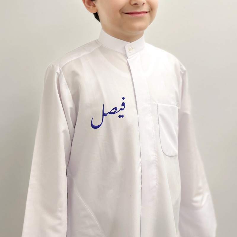 - دشداشة تقليدية للاحتفال بشهر رمضان والقرقيعان والعيد. - يمكنك تطريز اسم طفلك على القماش. - تتميز بتطريز عالي الجودة.