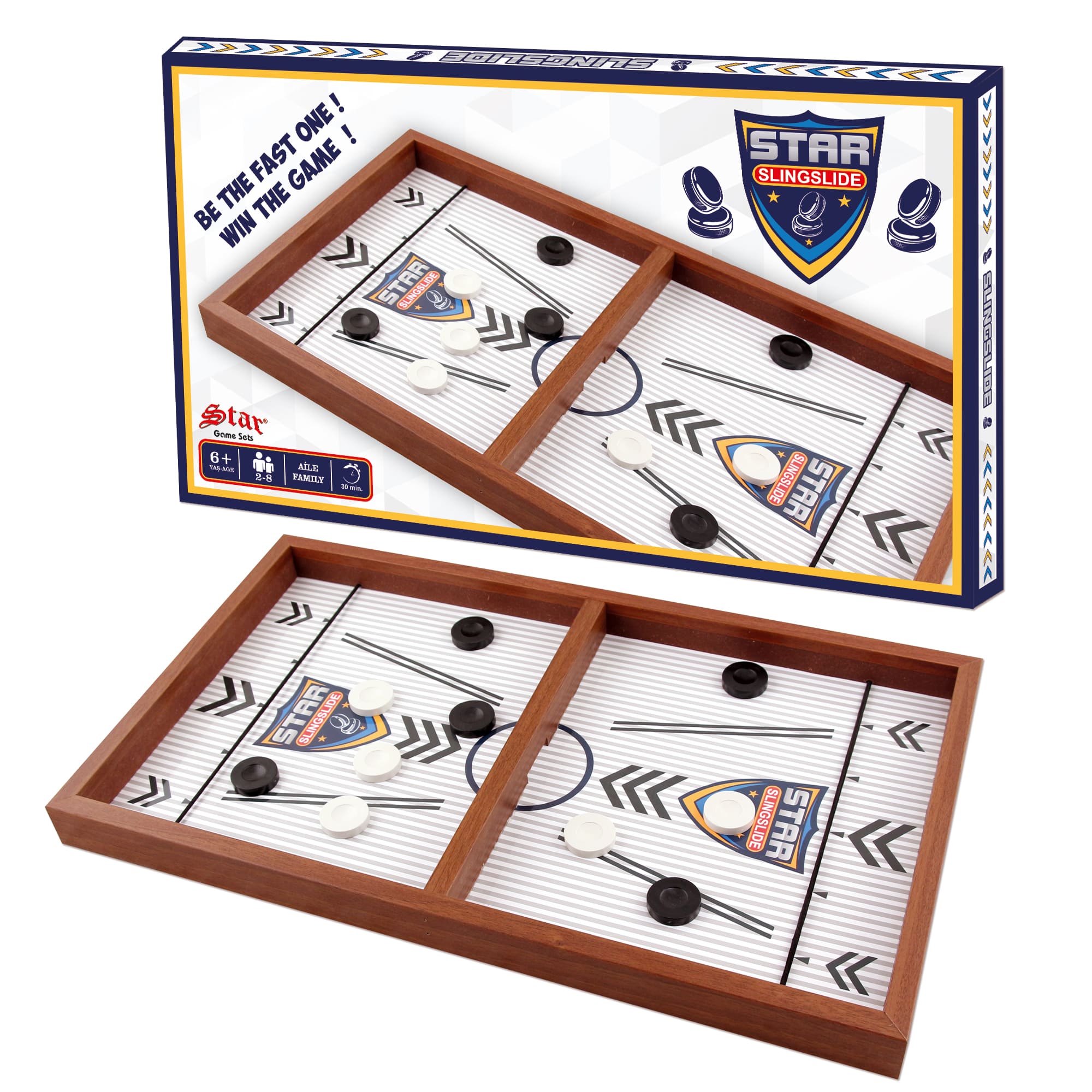 لعبة سلينغ سلايد الخشبية من ستار افضل اختيار لطفلك. - يمكن لعب 2 لاعبين. - ابدأ اللعبة وضع خمس كرات على كل جانب من جوانب اللوحة. - حرك طرفي الشريط المطاطي في الأخاديد الجانبية بحيث يستقران في مكانهما. من يمسح اللوح يفوز أولاً. - إطار خشبي صلب عالي الجودة وقطع لعب خشبية. - يحسن التنسيق بين اليد والعين لطفلك ، ويقوي المهارات الحركية الدقيقة. - يزيد من تركيز الطفل. - الحجم: 62 × 26 × 4. 5 سم. - مناسبة للأطفال من عمر 6+ وما فوق.