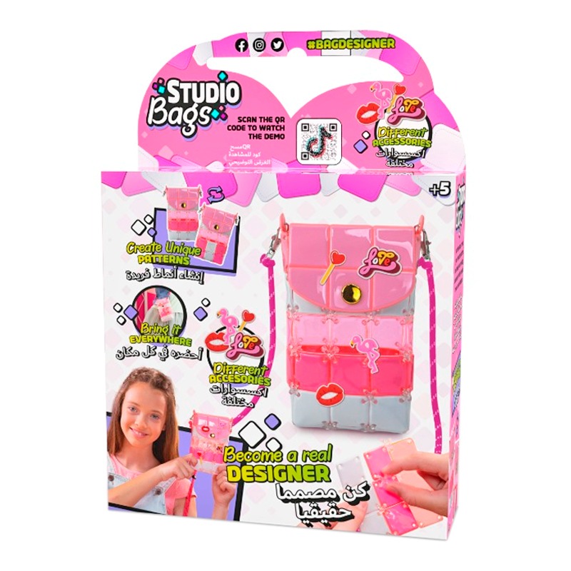 - أنشئ النمط المفضل لديك واصنع حقيبتك الخاصة. - قم بتزيينها بالإكسسوارات وأنشئ تصميم فريد من نوعه. - يشتمل على: مجموعة من الأكسسوارات و حامل للحقيبة .