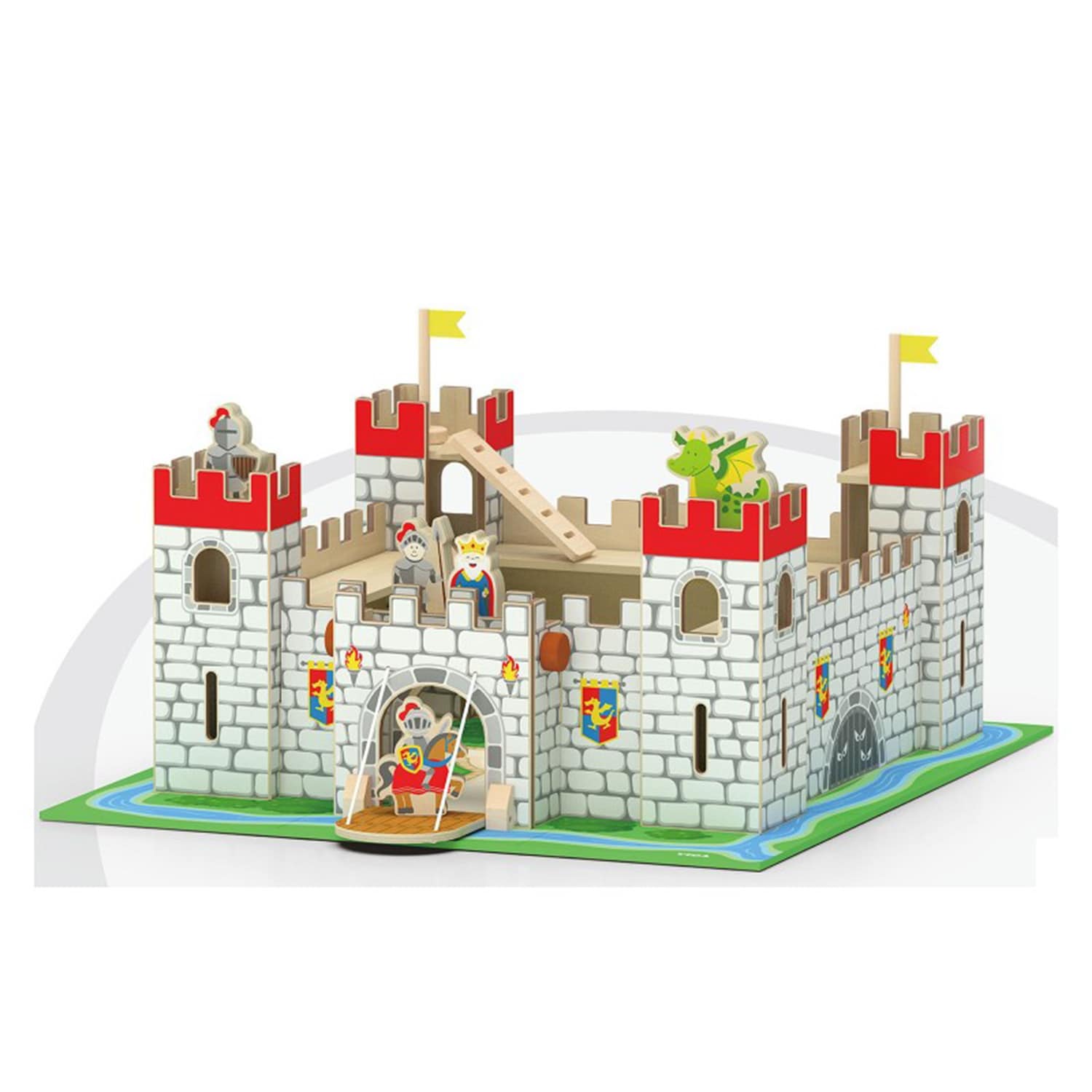 تحتوي هذه القلعة الخشبية المصممة تصميما جيدا على تفاصيل حقيقية ، والتي تحتوي على 4 أبراج ، وجسر مرقاب واحد ، واثنين من الأعلام ، وسلالم و 5 أشكال (الملك والفارس والتنين ). أسفل الألواح اللغز 9 قطع. لوضع هذه القلعة على الأطفال اللوح يمكن أن يدعي كل من يريد ورواية القصص. يشجع الآباء والأمهات بشدة على لعب هذه القلعة مع الأطفال وقد تسهم في تحسين قدرات الأطفال على تحسين قدراتهم الاجتماعية.