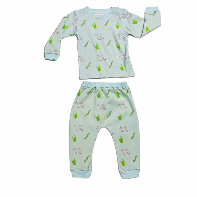 بجامة برسومات سمك الزبيدي أكمام طويلة - لون أزرق