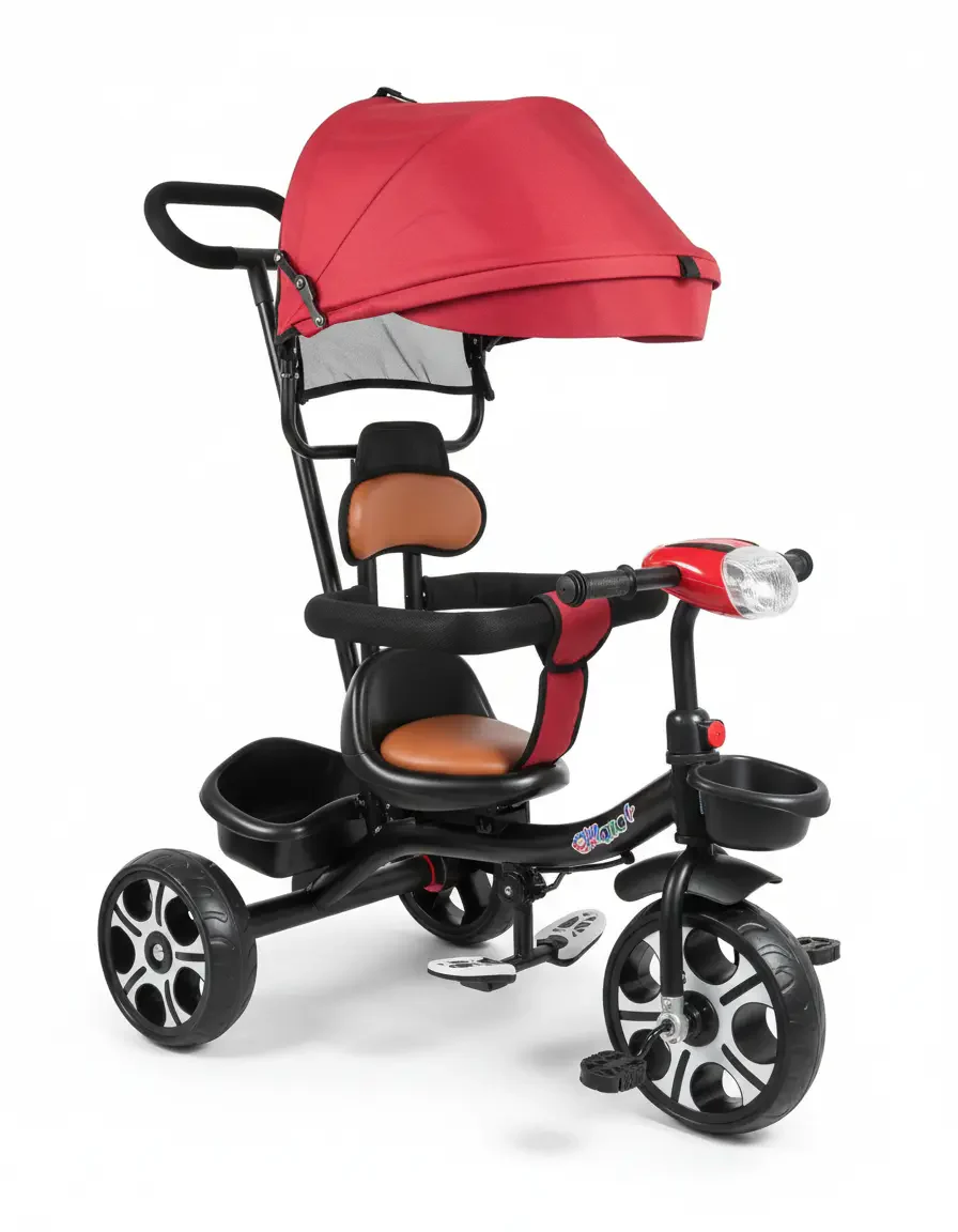 دراجة ثلاثية العجلات للأطفال مع مظلة وقاعدة مريحة | متوفر باللون ( أحمر ، أزرق ، وردي )
