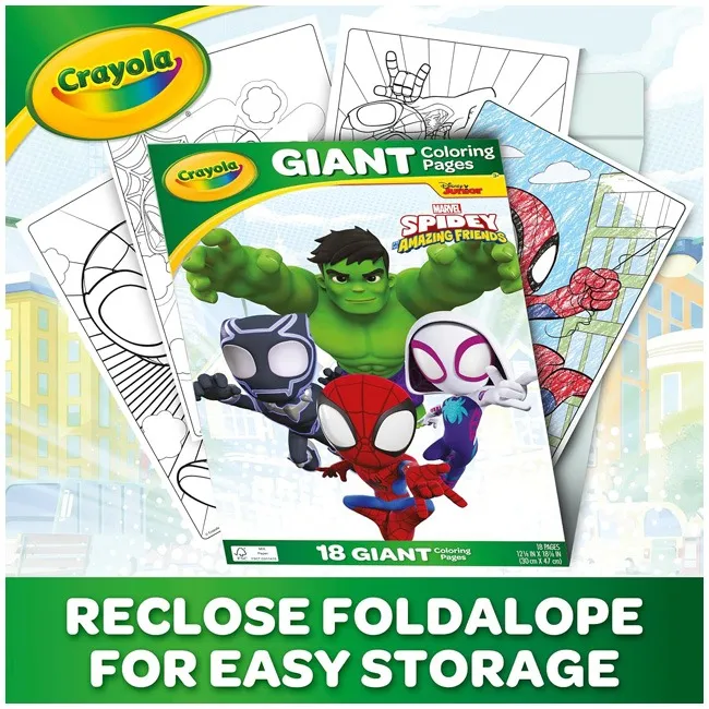 Unleash big creativity with the Crayola Spidey and Friends Giant Coloring Book, packed with action-filled scenes featuring Spidey and his amazing friends. This oversized coloring book offers large, bold outlines that are easy for young kids to color, making it perfect for developing hand control and creativity. With plenty of pages to enjoy, children can explore their imagination while coloring their favorite Marvel characters again and again. Ideal for crayons, colored pencils, or markers, this giant coloring book is great for home, classrooms, playdates, or quiet time. Designed to keep kids engaged, it encourages artistic expression, focus, and hours of screen-free fun.