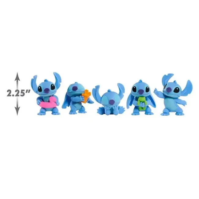 Bring home the magic of Stitch with the Disney Stitch 5‑Pack Collectible Mini Figure Set! This amazing set includes five different stylised mini figures — from Hula Stitch to Superhero Stitch and even Alien Stitch — each approximately 2–3 inches tall. Crafted with vibrant colours, expressive poses and detailed design, these figures make a perfect addition to any fun‑loving fan’s collection. Whether for imaginative play, display on a shelf, or as party‑favour gifts, this set captures the beloved mischievous spirit of Stitch from Lilo and Stitch. Ideal for kids ages 3 and up and collectors alike, it delivers collectible joy in one box. Display them together or swap with friends — this set offers hours of fun and quirky charm for everyone.