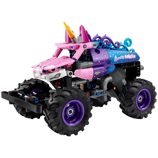 Recreate the exciting action of Monster Jam with this kids pull-back truck toy for boys and girls ages 7 years and up. Use the cool pull-back function to send the Sparkle Smash truck speeding along, then recreate the awesome stunts performed by iconic monster trucks. This detailed unicorn monster truck toy comes with authentic design details like the sparkling stars and iconic unicorn horn inspired by the real Sparkle Smash truck. This building toy monster truck gift idea for boys, girls and kids is a fun option for anyone who loves LEGO vehicles, unicorn toys, pull-back cars and the excitement of Monster Jams jaw-dropping events. LEGO Technic sets feature realistic movements and mechanisms that introduce young LEGO builders to the universe of engineering in an approachable and realistic way. Kids can build with confidence using the LEGO Builder app, which lets them zoom, rotate in 3D and track progress with easy-to-follow digital instructions. Set contains 243 pieces.
