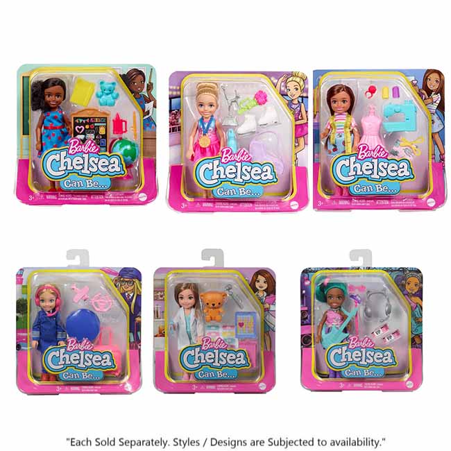Just like her big sister, Barbie, Chelsea doll loves trying on different career roles. Kids can explore a world of fun with the Barbie Chelsea Can Be doll assortment featuring diverse Chelsea dolls (6 inches) in a variety of different career roles. Each Barbie Chelsea Can Be Career doll features adorable career-themed clothing and career-related accessories to play out the storytelling fun. Dolls cannot stand alone.