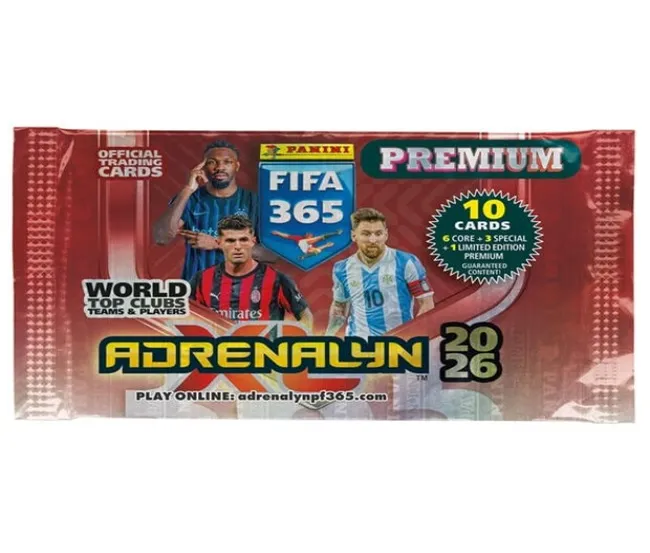Celebrate the excitement of global football with the PANINI FIFA 365 2026 AXL Premium Packet. Each packet includes 10 high-quality collectible cards featuring top international players and clubs. Discover 1 Fans card, 1 Power card, 1 Jewel card, and 1 Limited Edition Premium card-exclusive to premium packets. With stunning designs and rare inserts, this collection is perfect for fans, collectors, and trading card enthusiasts. Whether You are chasing autographs or building your dream team, the 2026 edition brings the thrill of the beautiful game to your fingertips. Start your journey to complete the set and own a piece of football history