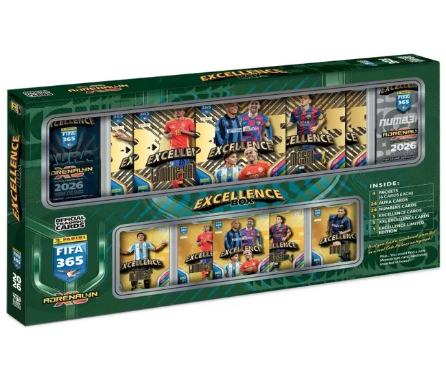 Step into the world of football collectibles with the PANINI FIFA 365 Adrenalyn XL 2026 Excellence Box the ultimate treasure for fans and collectors. This premium edition celebrates the global passion for the beautiful game, featuring exclusive cards that highlight legendary players, rising stars, and unforgettable football moments. Each Excellence Box is carefully curated to deliver rare inserts, limited editions, and high-quality designs that elevate your collection. Perfect for trading, playing, or displaying, it offers a thrilling experience for enthusiasts of all ages. With vibrant artwork, durable card stock, and Paninis unmatched authenticity, the FIFA 365 Adrenalyn XL 2026 Excellence Box is more than a collectible its a gateway to football history and excitement.