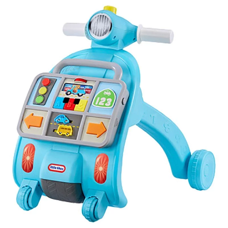 The Little Tikes Learn & Play Learning Lane Activity Walker encourages early walking and helps kids discover the rules of the road. Inspired by the fun and sleek European scooters, this driving-themed walker offers three different ways to play. Toddlers can sit or stand to interact wit