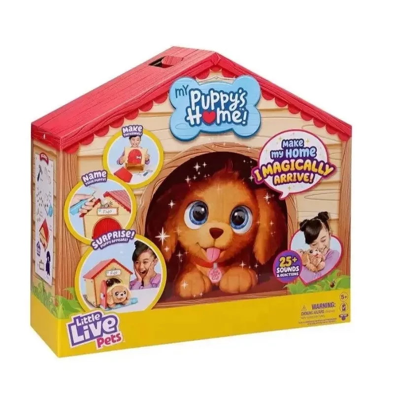 Flat pack with all the tools and parts your child needs to build a cute little house. - After the walls and ceiling are put together, it's time to lay out the welcome mat and fill their water bowl. - This interactive puppy reacts to your baby's touch like a normal pet and responds to your touch when