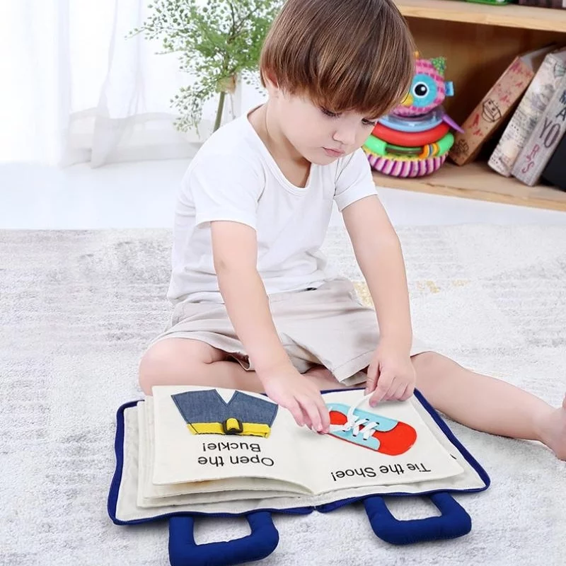 This book toy will teach children a variety of basic skills, such as identifying colors and shapes, tell time, button up, open buckle, zip up and so on. It is absolutely non-toxic and safe for your baby, the stitching is strong for extra durability. The fabric book is designed to stimulate important