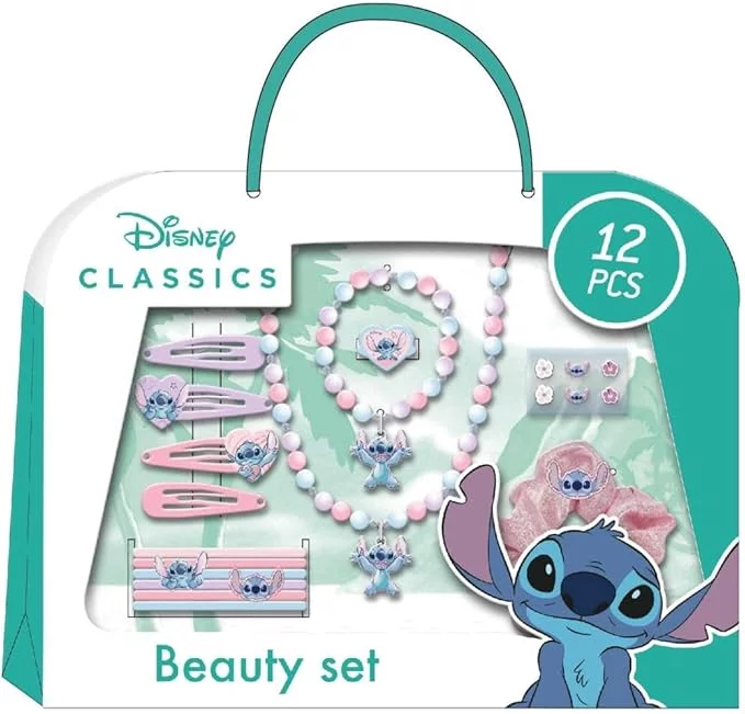 Stitch accessory set: we have created this set to make your little ones look amazing hairstyles. Includes hair ties, hair clips, necklaces, a ring and stickers to look great. Everything your child needs for their adventures
