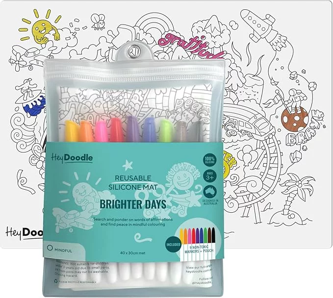 Brighter Days: Reflect on uplifting affirmations as you delve into mindful coloring. This toddler drawing pad features eight positive messages to find and ponder, offering a soothing and reflective coloring journey. Complete set: Each activity mat set includes an A3 reusable toddler doodle pad, nine
