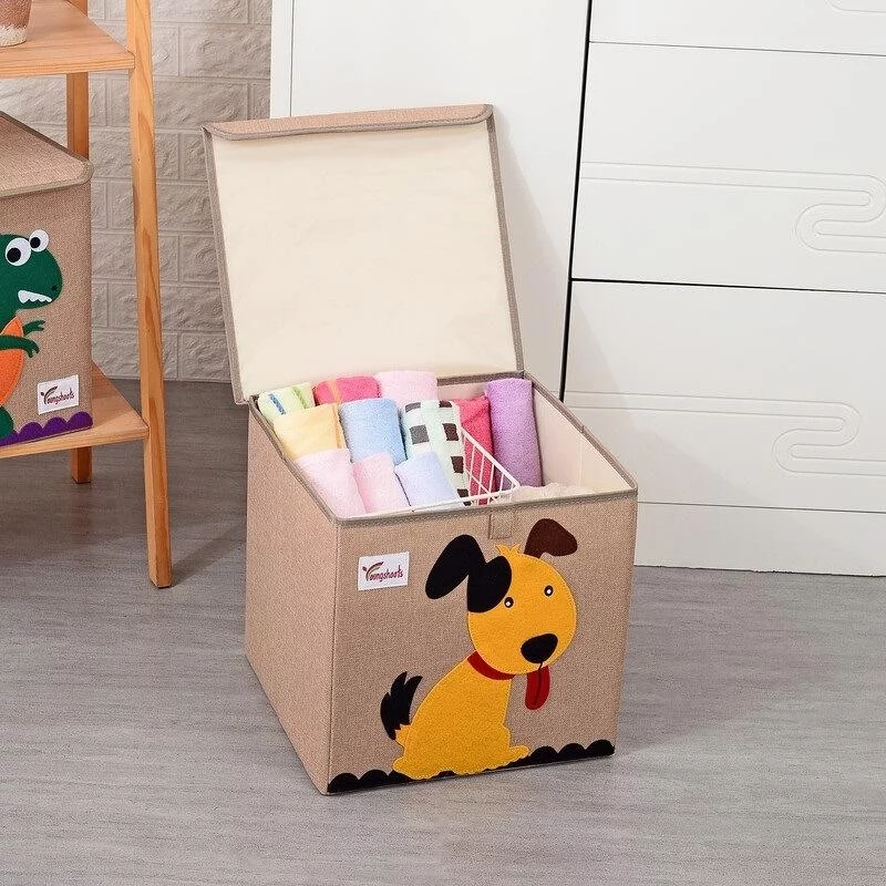 This cute animal toy chest is the perfect organizational tool for any room. With sides reinforced by cardboard, our toy chest attracts attention even when empty and the lid keeps all toys out of sight. This toy chest adds a pop of fun to every room and makes organizing toys or nursery items fun and