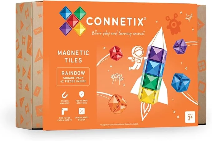 42 PIECE PACK – Contains 6 x Large squares and 36 x Small squares in every vibrant rainbow colour! All tiles feature our unique bevelled design, allowing the tiles to be strong whilst offering beautiful clear refractions. DISCOVER MAGNETIC TILE PLAY - Experience the Connetix signature bevel design as