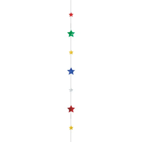 • Celebrate with fun balloons• Metallic Plastic & Glitter Paper• Measures 1. 8m long• Balloon weight sold separately • Use on a helium filled balloon size 18" and up Use this balloon tail instead of a plain ribbon to turn your helium-filled balloon into a statement decoration. With one end tied to the balloon and one tied to a weight, the string of metallic and glitter stars will brighten up any celebration.